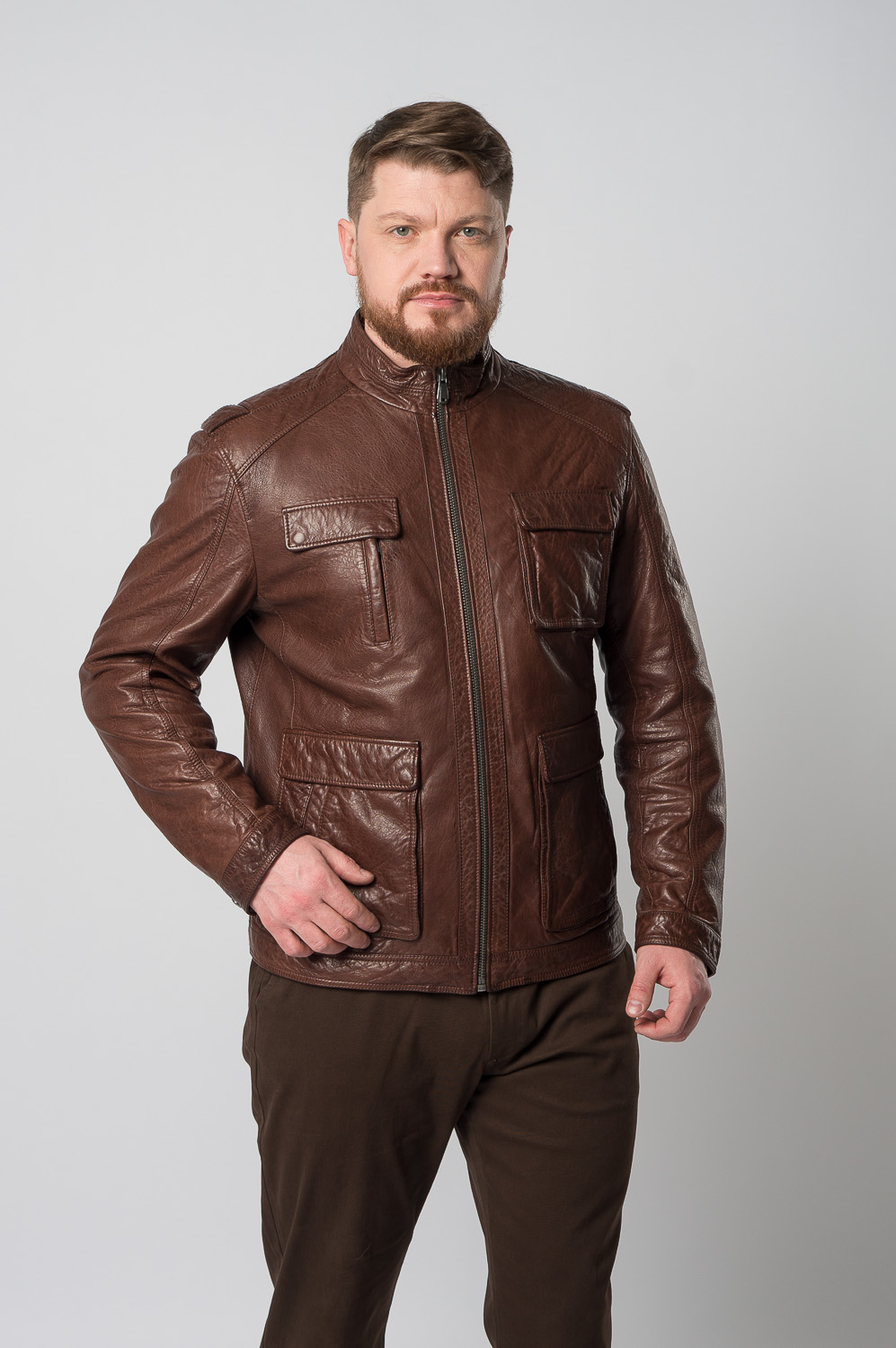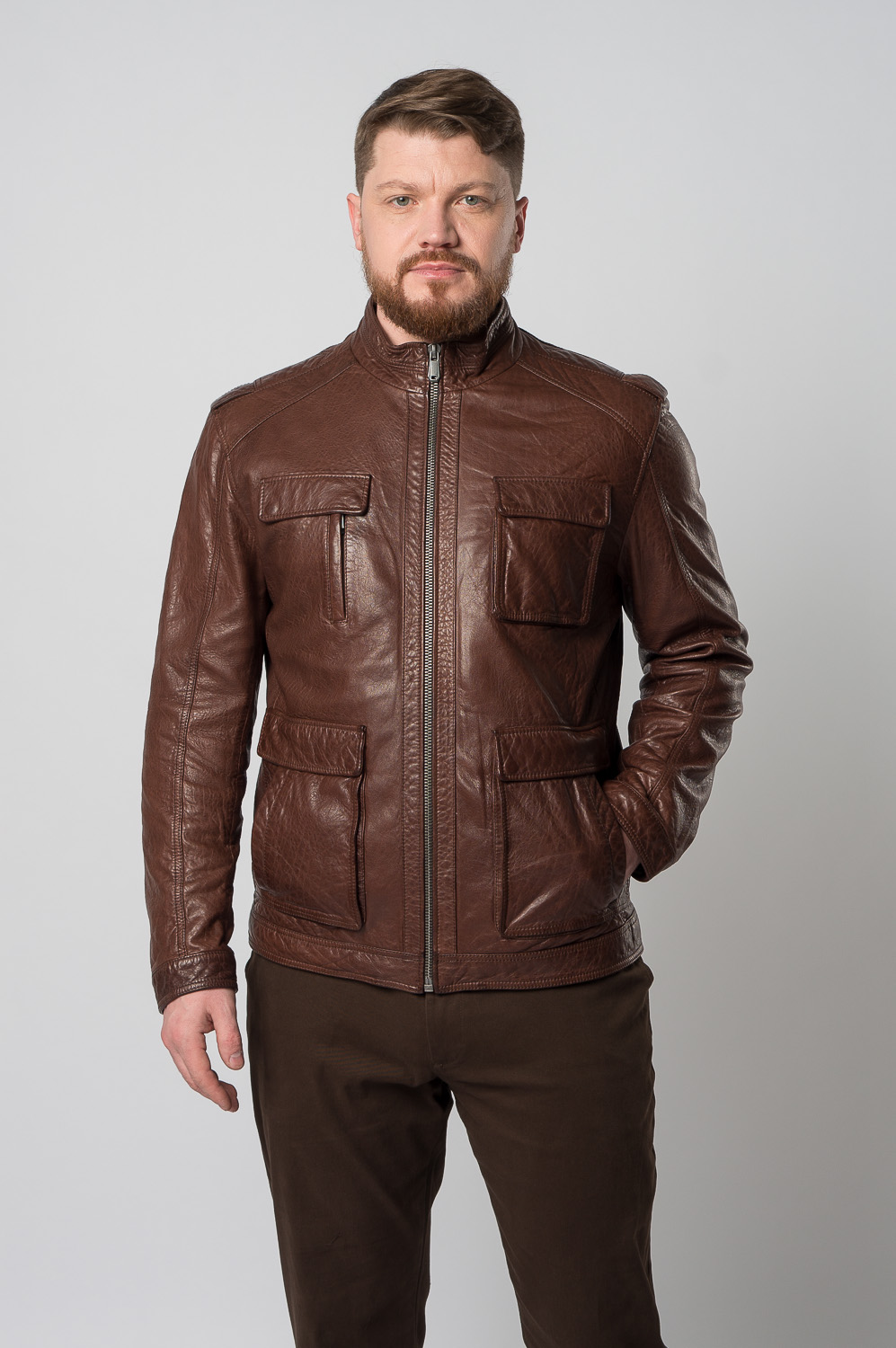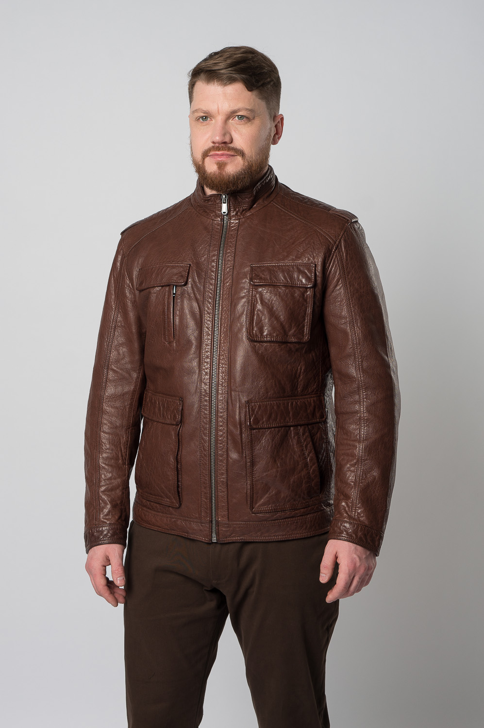 Мужская куртка из натуральной кожи в коричневом цвете, который привлекает внимание. Удобный полуприлегающий фасон понравится тем, кто прежде всего ценит свободу движений. Аккуратные вместительные карманы позволяют взять с собой самое важное. Изделие дополнено невысоким воротником-стойкой и застежками на выбор: молнией или кнопками. Мы гарантируем бесплатную примерку и возврат товара в течение 30 дней.