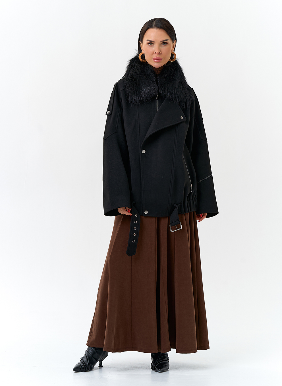 Отделка воротника - съемный мех лисы, цвет черный